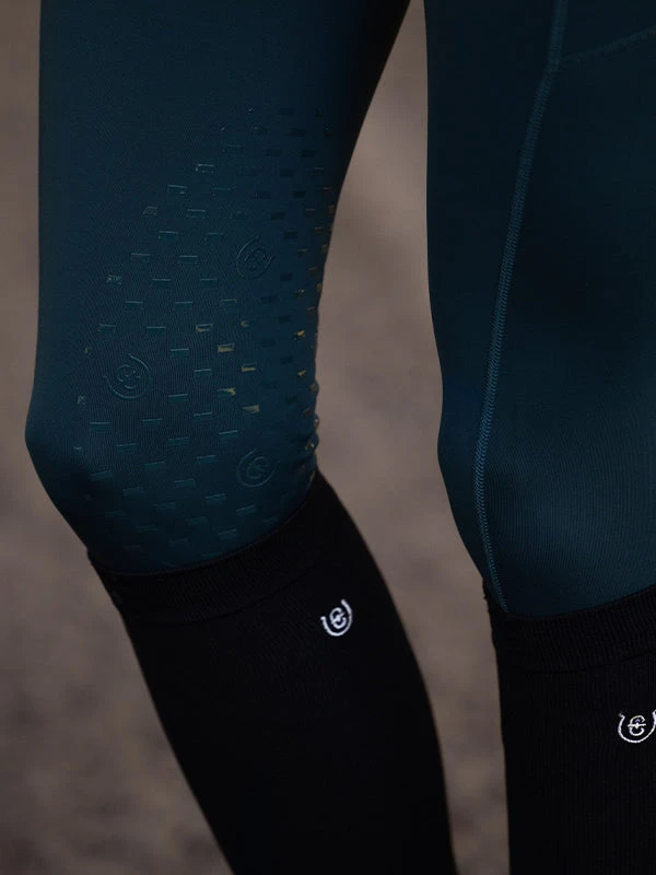 The Equestrian Stockholm Riding Tights Jump Movement come in a beautiful cool green colour and equipped with large side pockets on both sides, making it easy to store a phone. The Equestrian Stockholm Riding Tights Dressage Movement are decorated with a black printed ES logo on the left pocket and a beautiful black printed Equestrian Stockholm logo on the centre of the waistband.