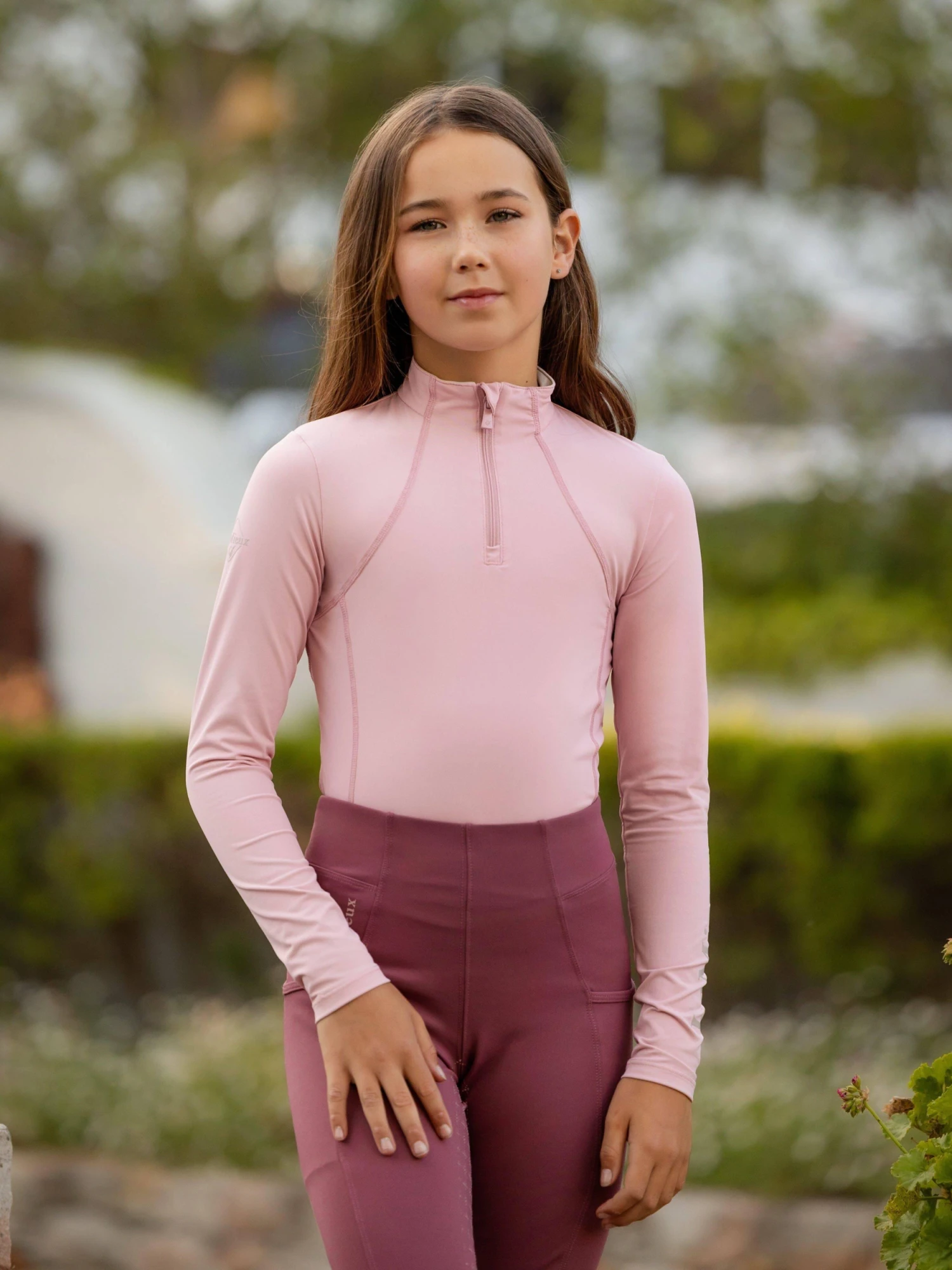 Our performance base layer for active young riders, this technical UV50+ quarter zip base layer is designed to regulate body temperature. Ventilated underarms keep you cool and dry, and the unique technical fabric moves moisture away from the skin to ensure optimum comfort.
