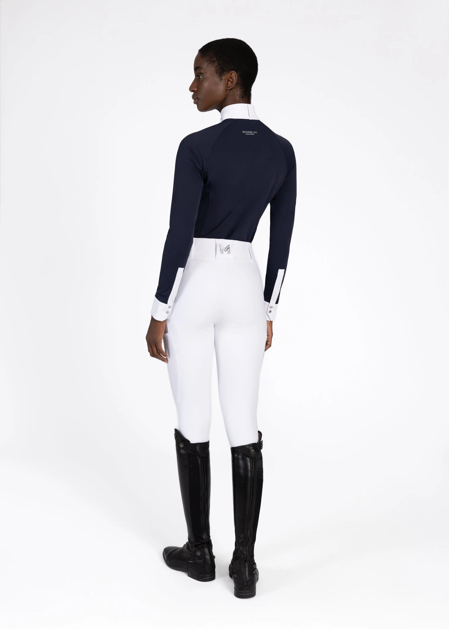 - High-waisted breeches with a wide waistband for added support and a secure fit