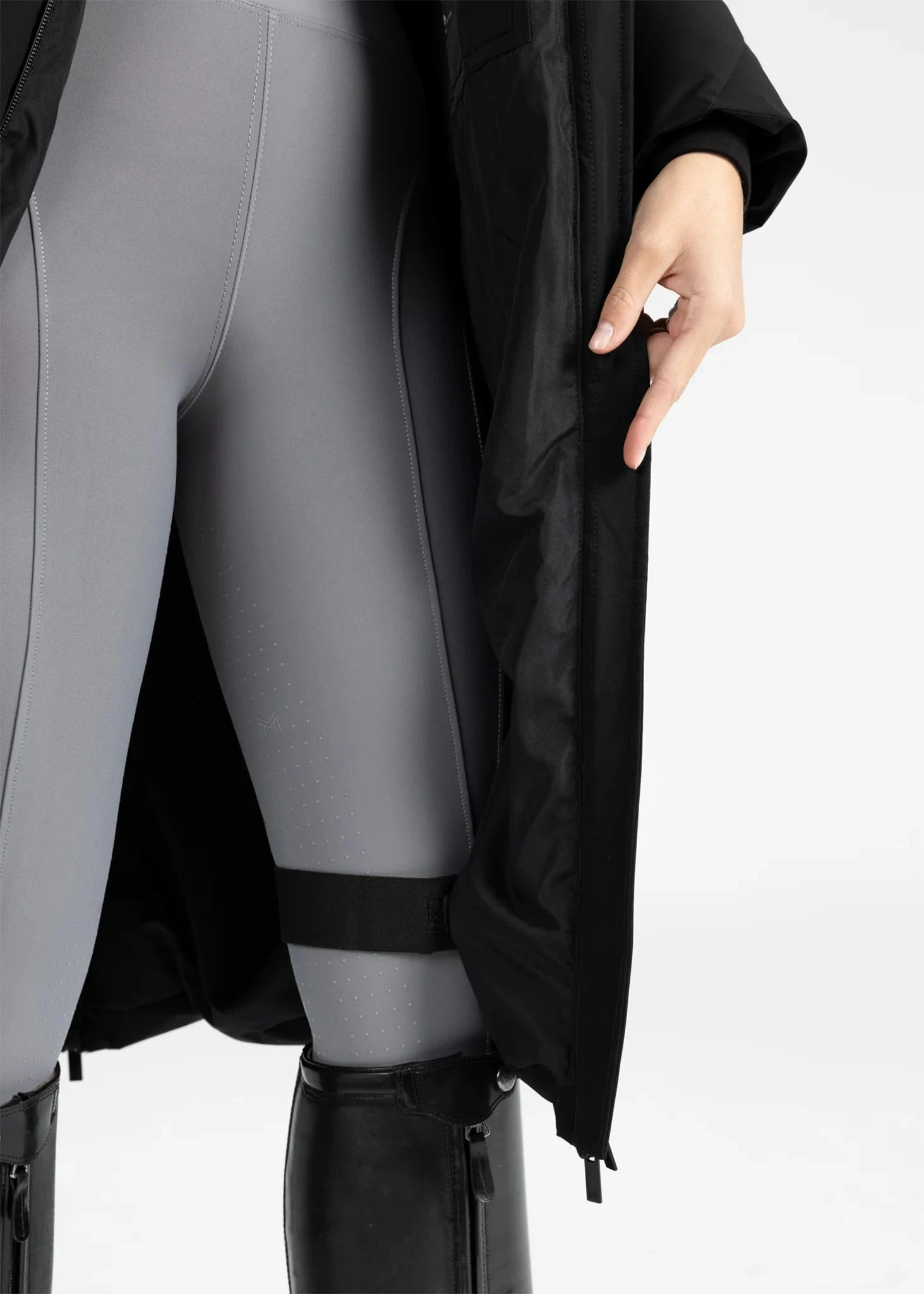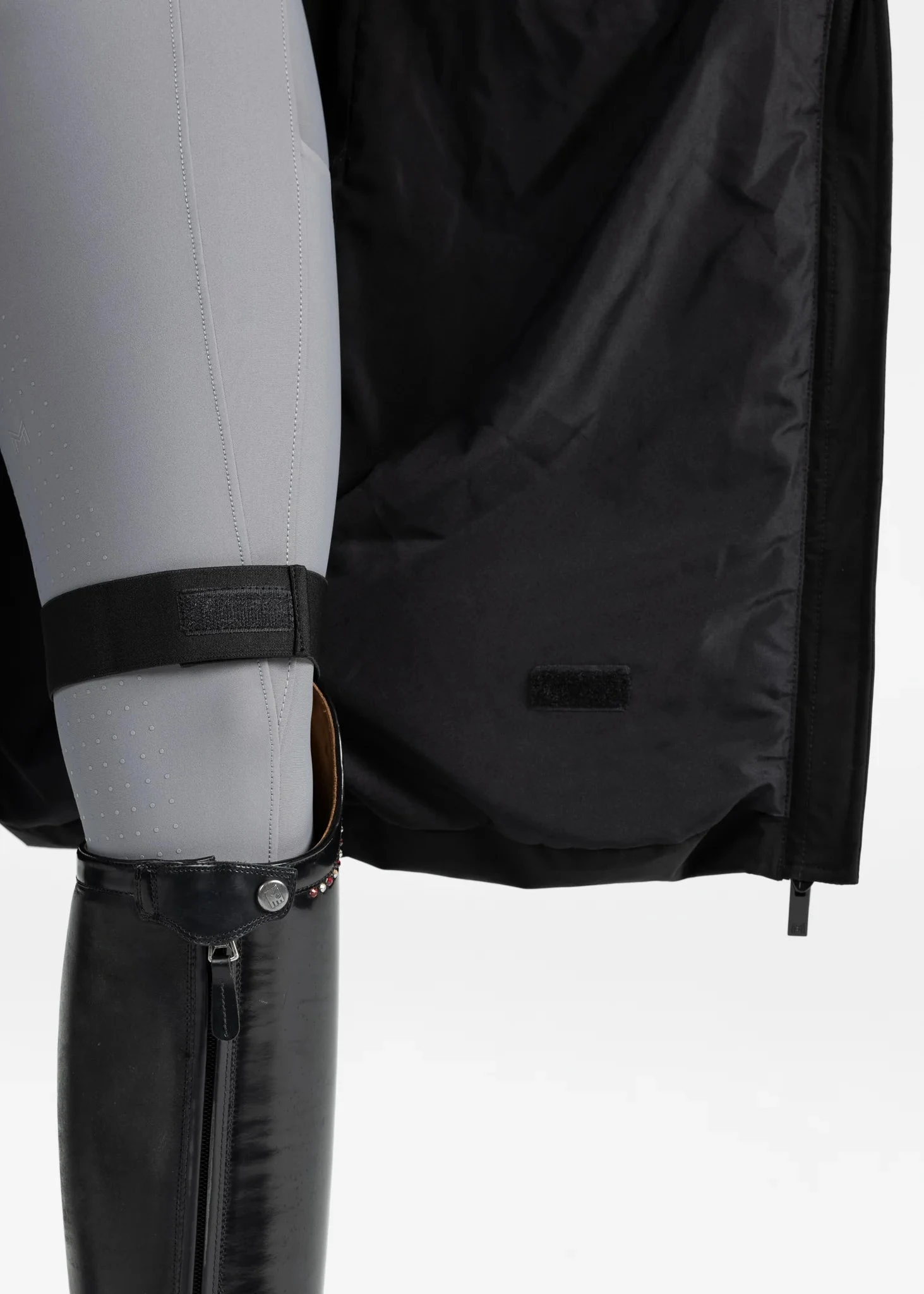 - Innovative internal leg straps that prevent the jacket from moving while riding, ensuring a secure fit.