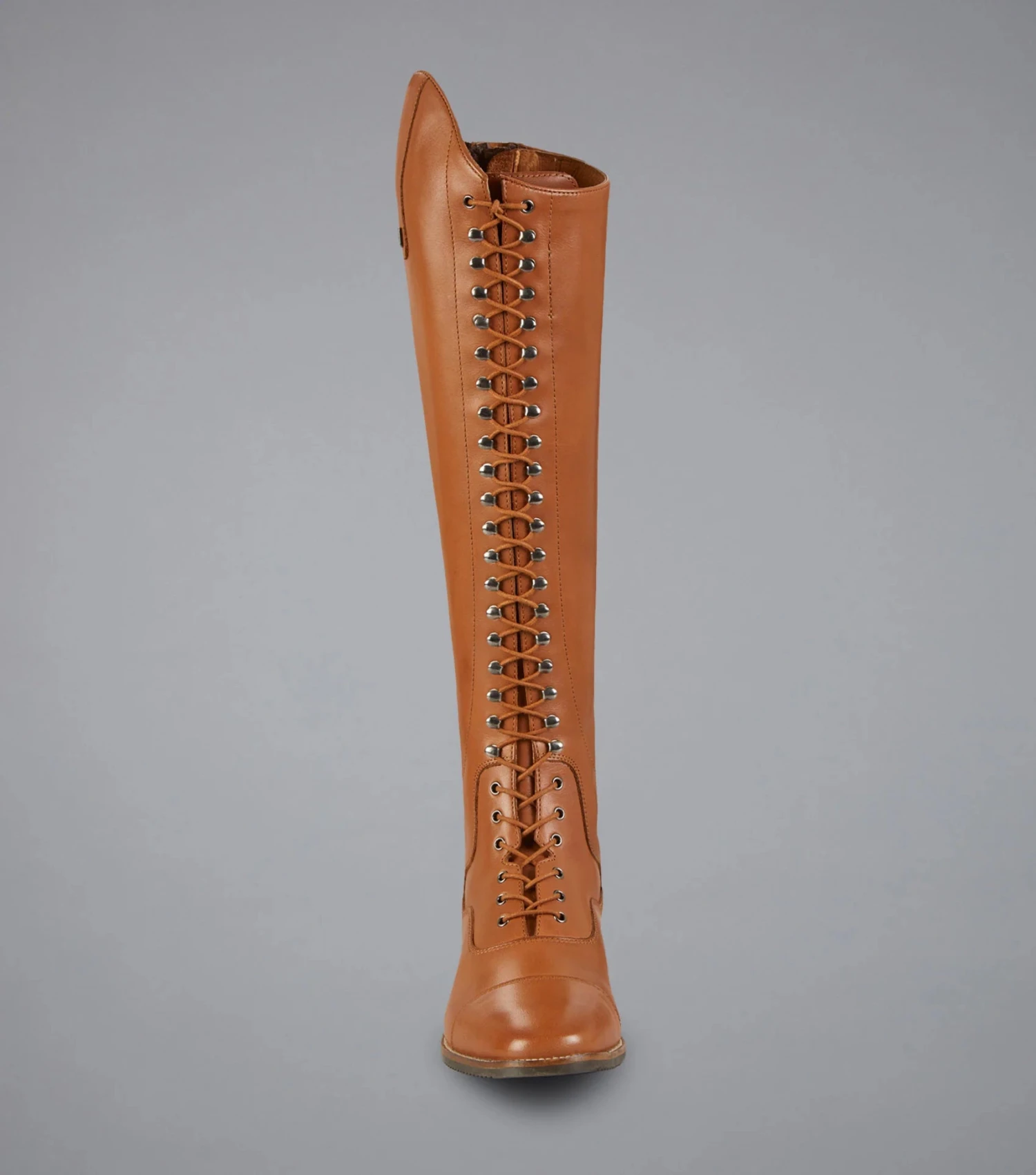The iconic full-front lace up system allows for bespoke fitting adjustments and demands attention in the training or show ring. These intricately designed ladies tall riding boots offer luxury riding boots crafted from premium materials, at an affordable price.
