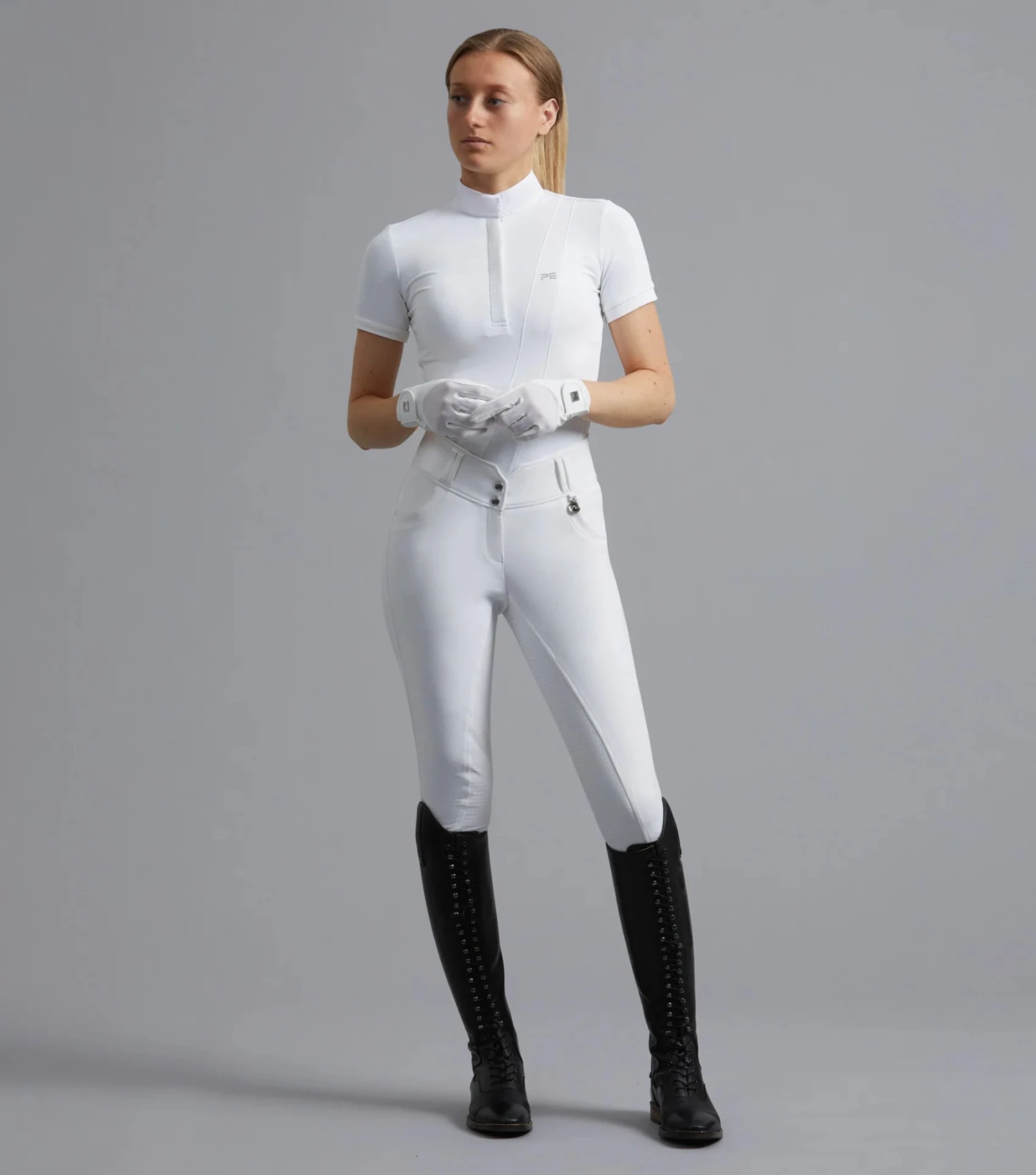 Premier Equine is a luxury brand known for its attention to detail. The Sophia Riding Breeches display PE branding which boasts quality and adds to a sophisticated an sportive aesthetic.Â