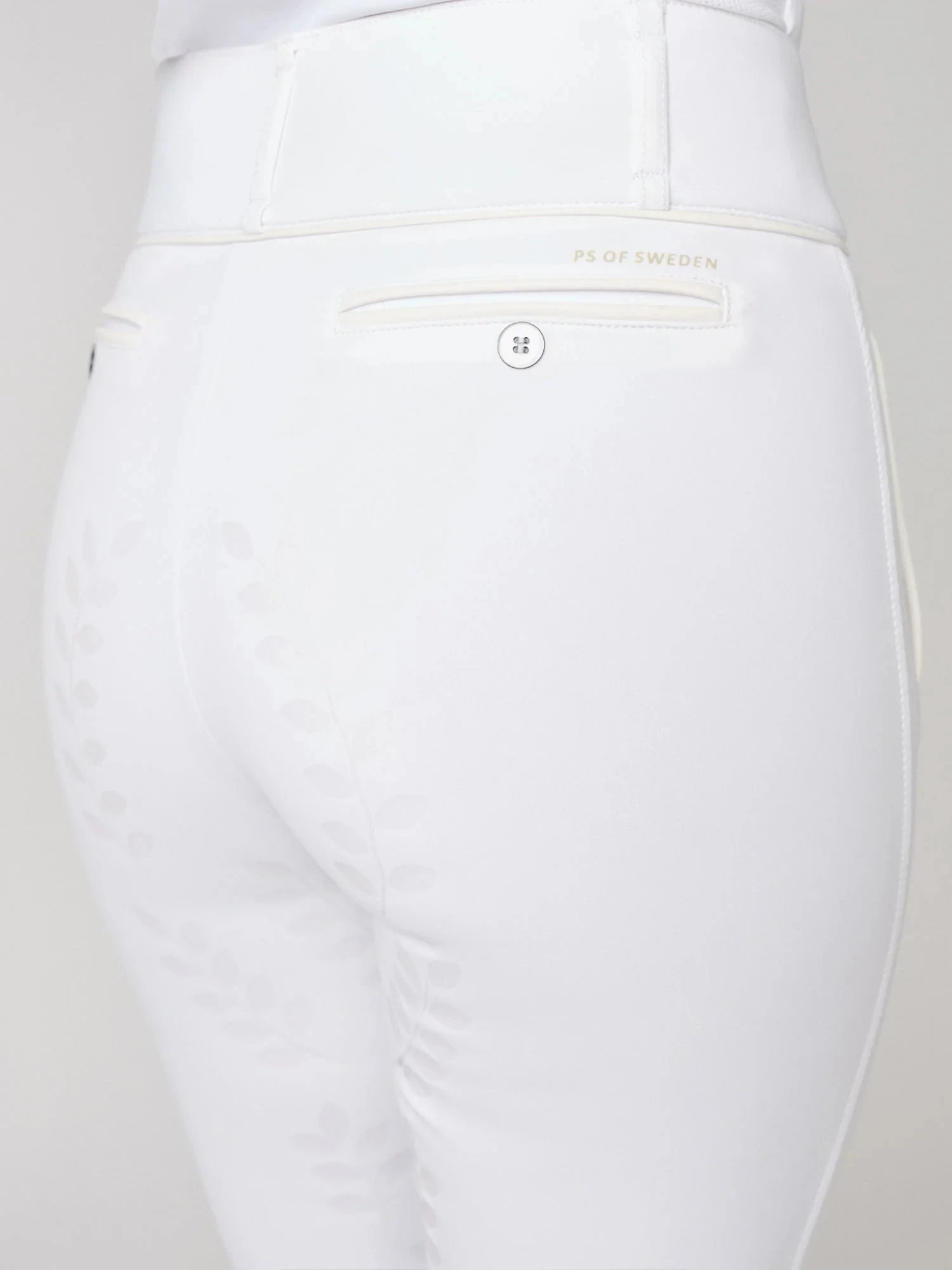 The full seat grip gives not only a good grip, but also a beautiful silhouette. The back pocket imitations are strategically placed to not scratch the saddle. The breeches are elastic at the ankles.Â